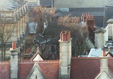 Pigeons, chimneys, pinnacles, and pointers. Oxford, near Hertford College.