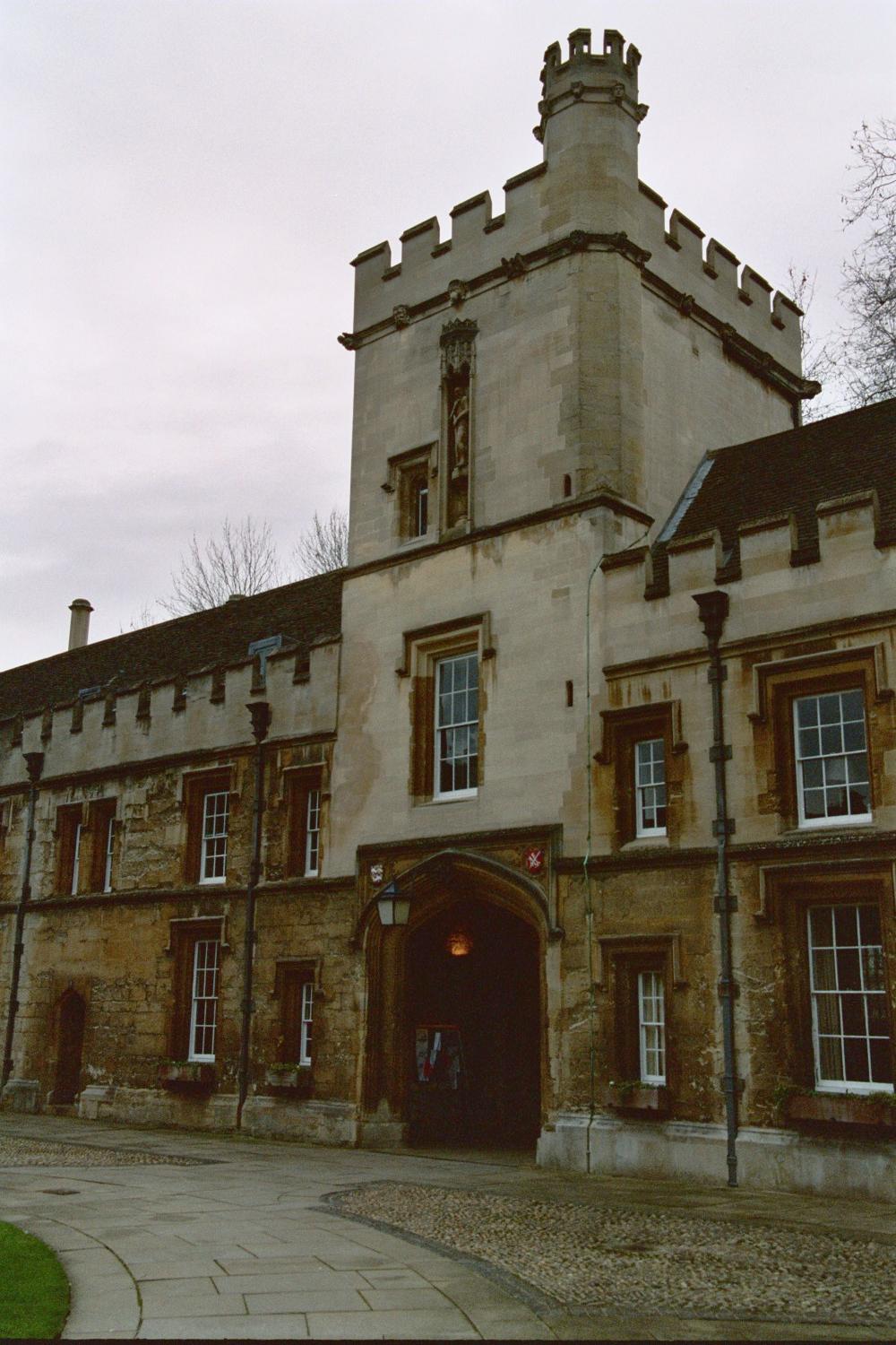 on the right. The College is built of Cotswold stone.