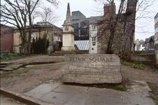 The graveyard of the Church of St Mary Magdalen, Oxford, and the intersection of St. Aldates (to the south) and Queen Street (to the right).