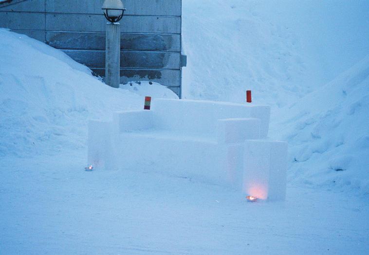Here's the glass motel room, some of the snow-motel, and the entrance to the