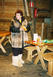 Lea Leisio, in a reindeer coat and reindeer boots, contemplating a dining strategy.