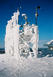 "Snow tree" (covered thick with hoar frost), fence (hard to tell, isn't it?), and ski-trail marker, Luosto ski hill. March 5, 2002.