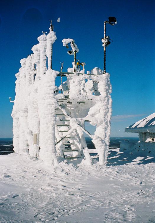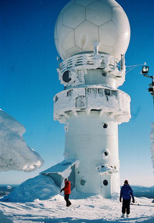 Jussi and Isabelle before the weather radar on top of Luosto Tunturi