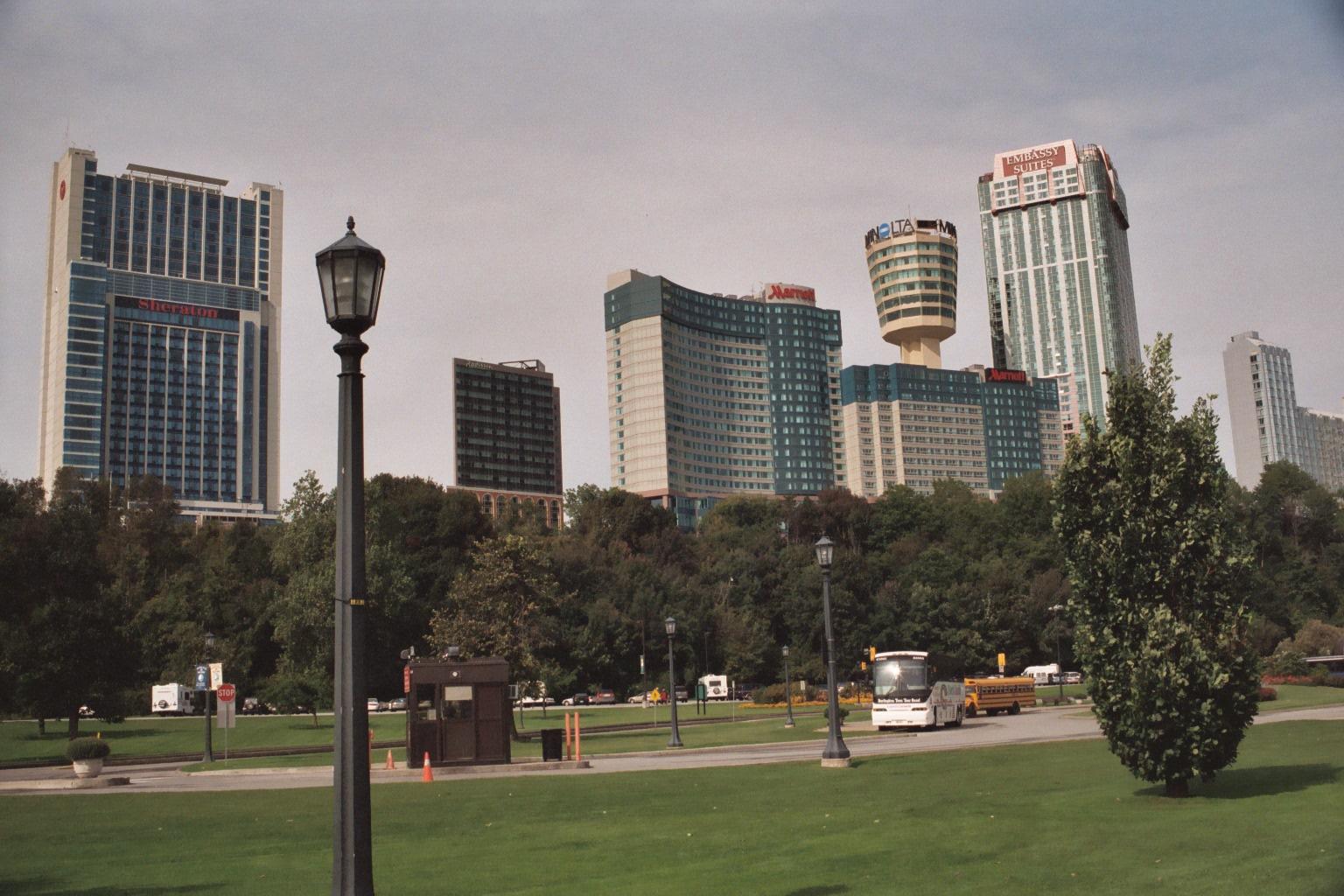 About a dozen hotels and two towers leer at the falls and gorge from the Canadian side of the river. None are on the US side -- the view just isn't that good, and besides, who wants to look at Canadians?