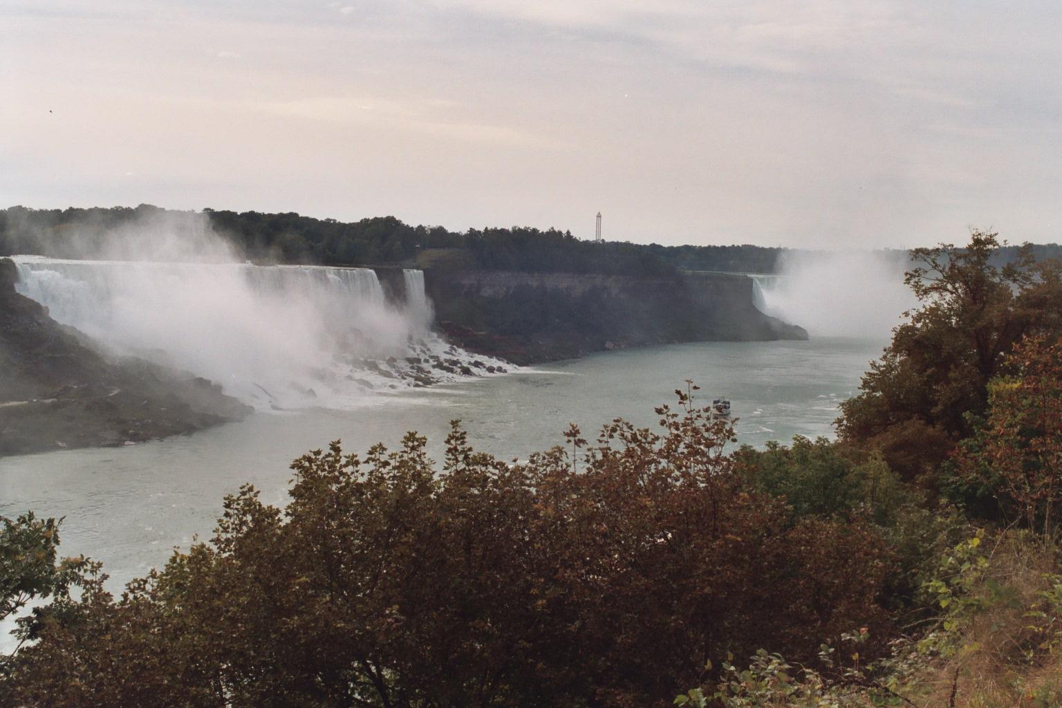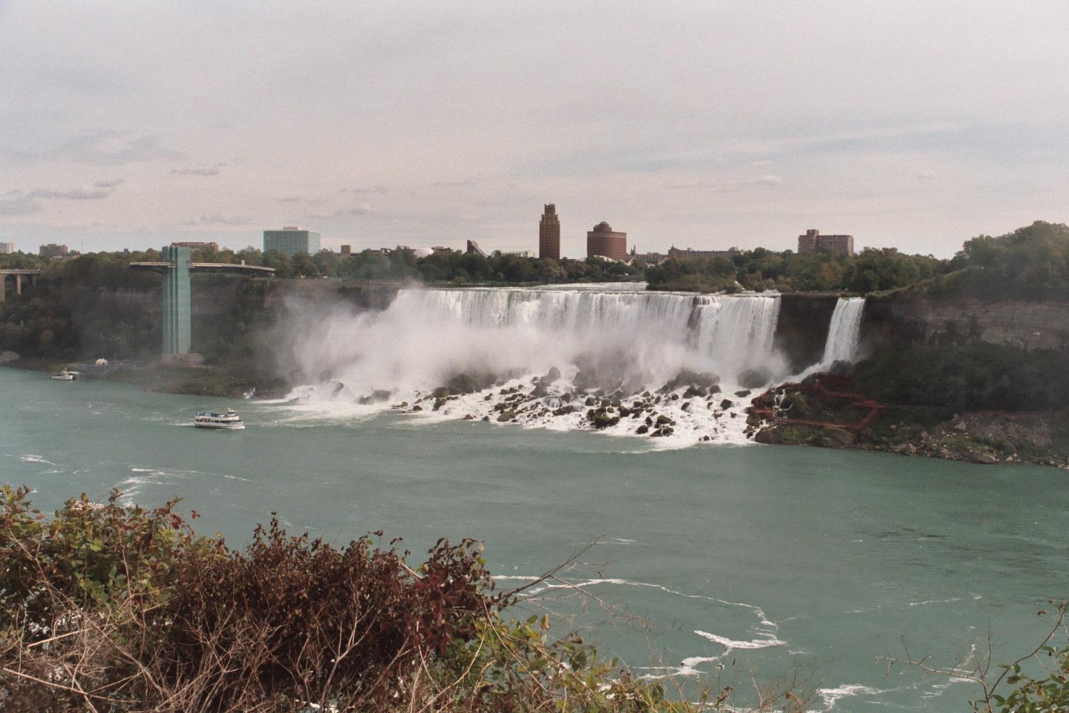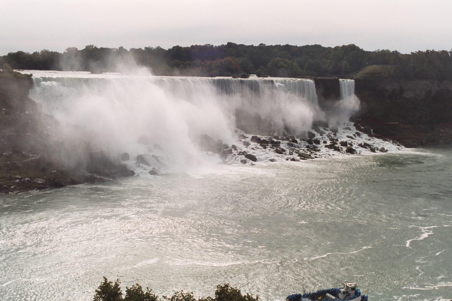 The American Niagara, looking SE. One of the Maid of the Mist boats posed in the foreground for scale. Kind of it, don't you think.