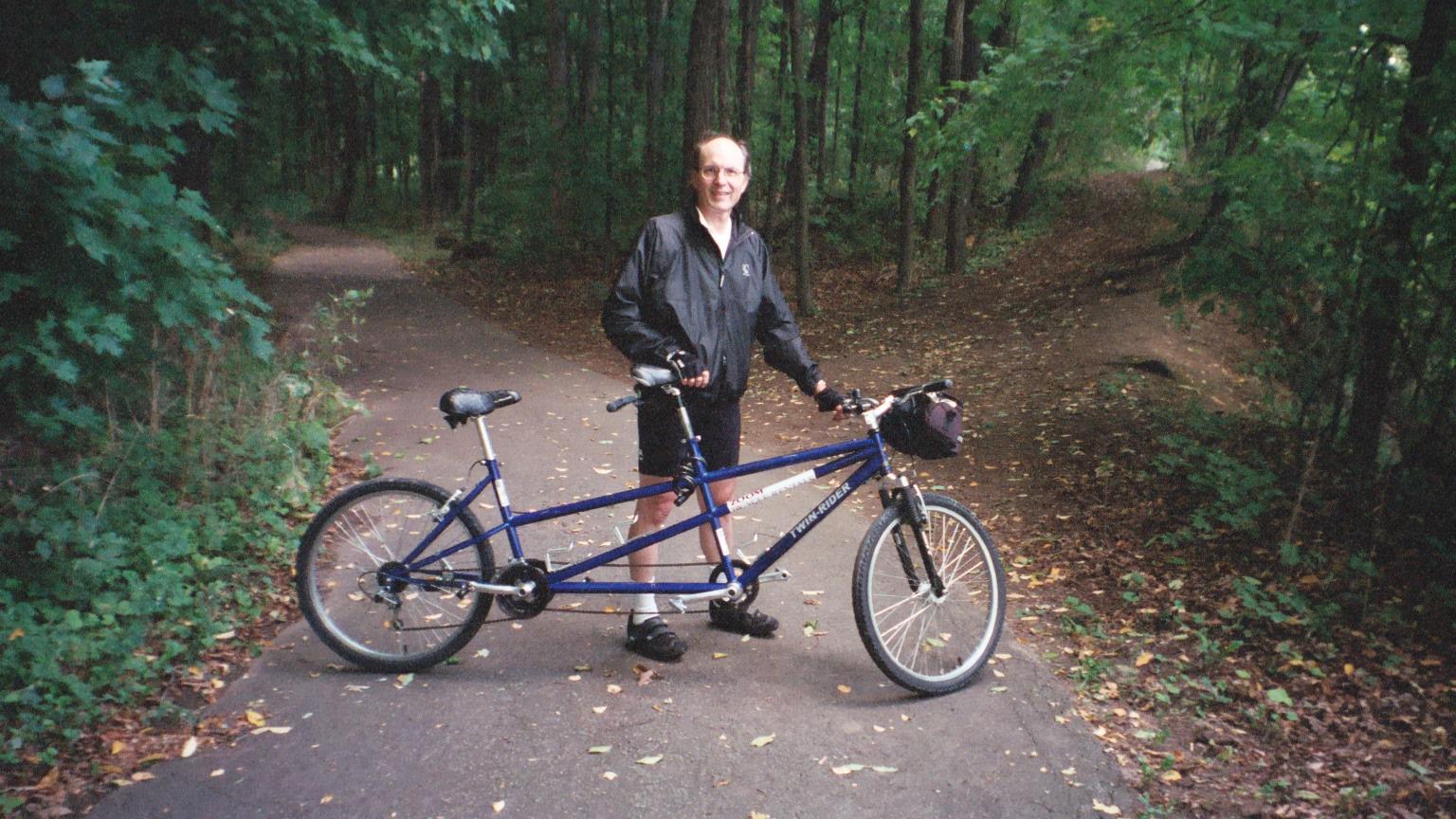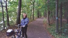 In a couple of nice spots, the bike trail plunges into the shady woods along the bluffs. The model is included for scale.