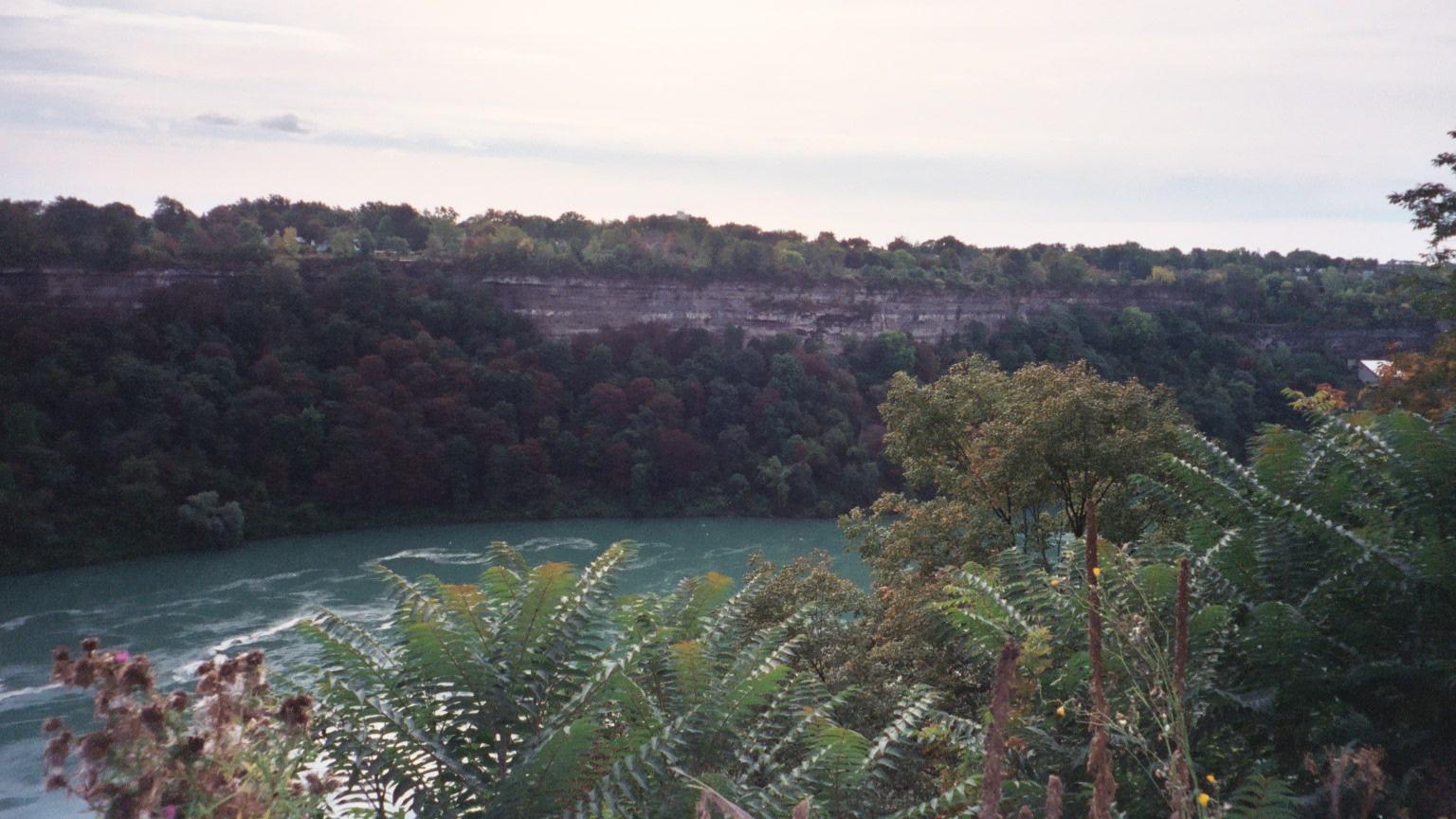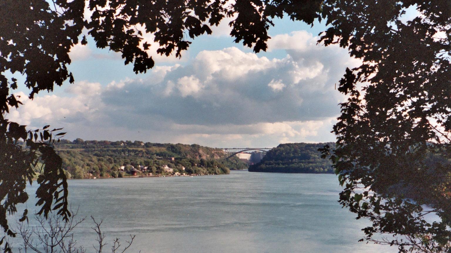 The US bluffs along the east bank of the downstream Niagara River.