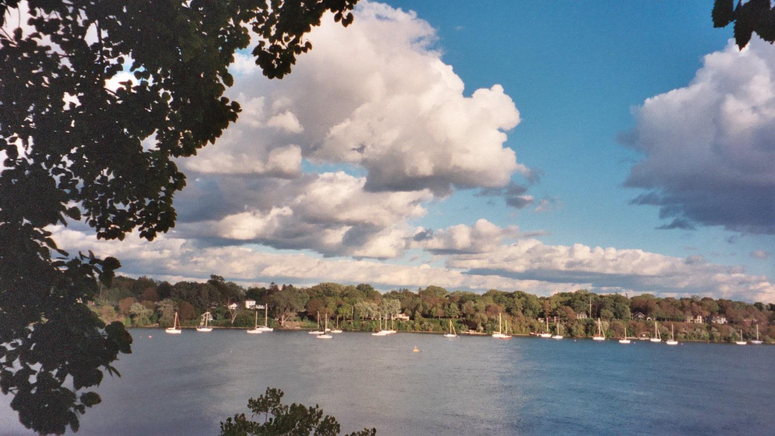 The Niagara widens near Lake Ontario, and a couple of large marinas lounge contentedly. The lovely puffy clouds were dropping little ice crystals on our heads.